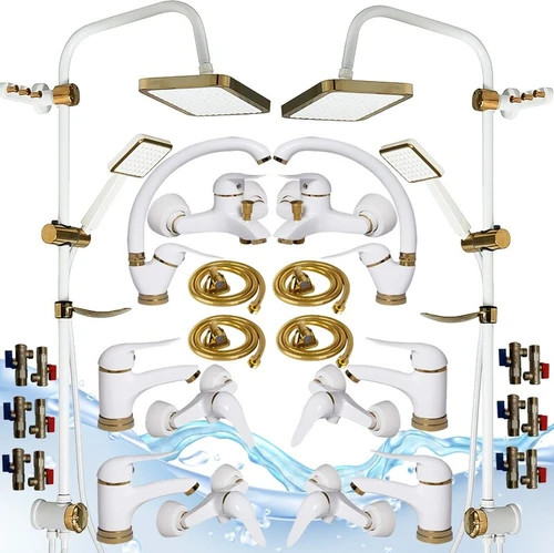 شیرآلات 30 تکه/2عدد ظرفشویی اردکی سفید طلا+2عدد اردکی سفید طلا+4عدد روشویی اردکی سفید طلا+4عدد توالت اردکی سفید طلا+4عدد شلنگ توالت طلا+2عدد علم دوش رسوبگیر سفید طلایی+12عدد پیسوار برنجی فیلتر دار